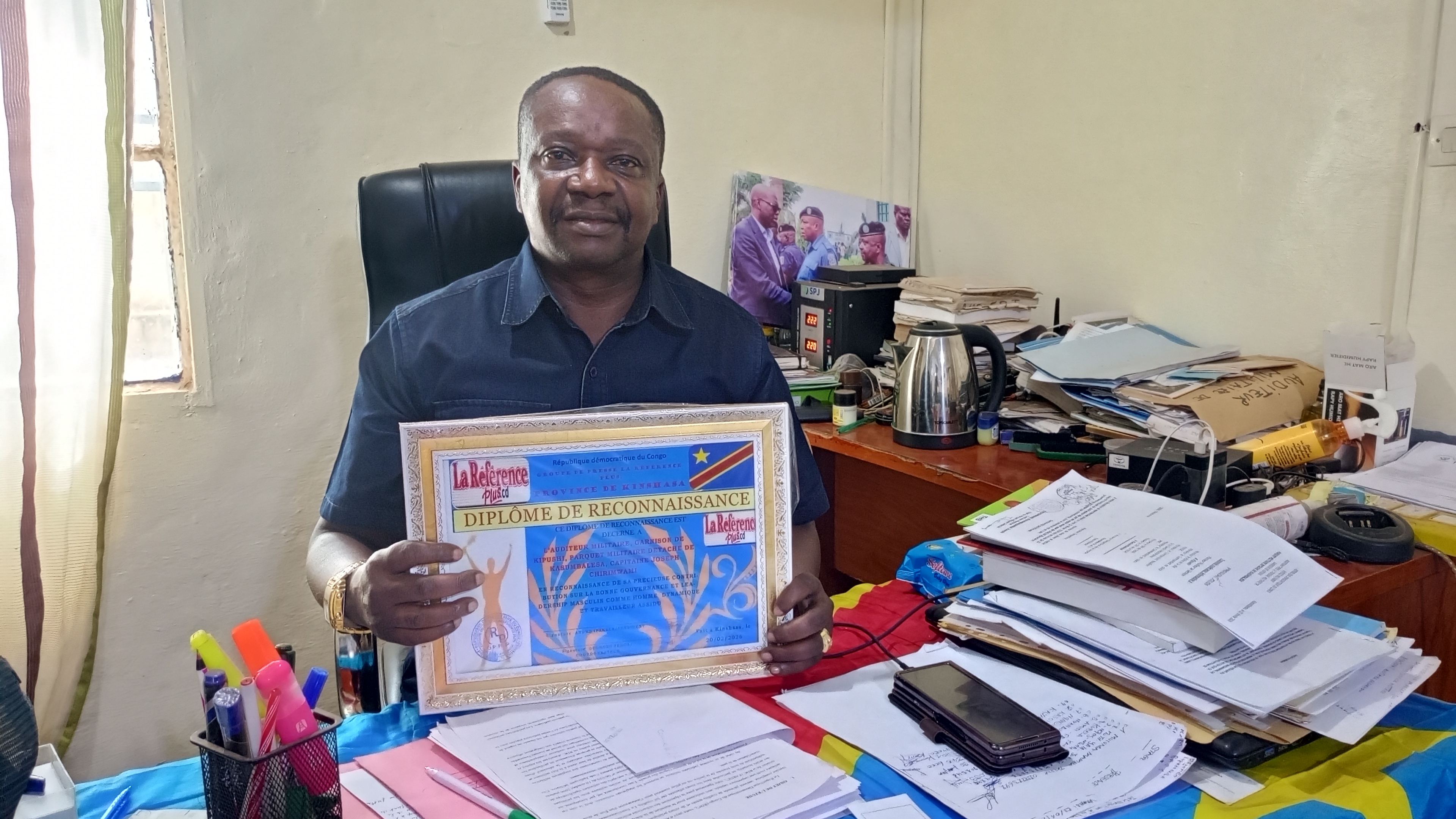 Cette distinction prestigieuse a été attribuée par le groupe de presse La Référence Plus, émanant de Kinshasa, en guise de reconnaissance pour son engagement constant, son sens élevé de responsabilité et son dévouement au service de la justice militaire.